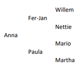 "\t\tWillem\n\tFer-Jan\n\t\tNettie\nAnna\n\t\tMario\n\tPaula\n\t\tMartha\n\n"