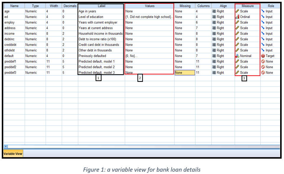 This ensures that the variable name validate which compute cases with non-missing values by default for customers who previously received loans.